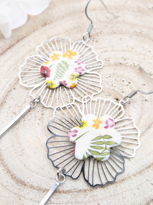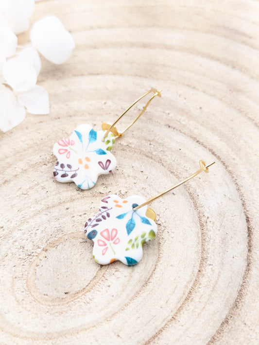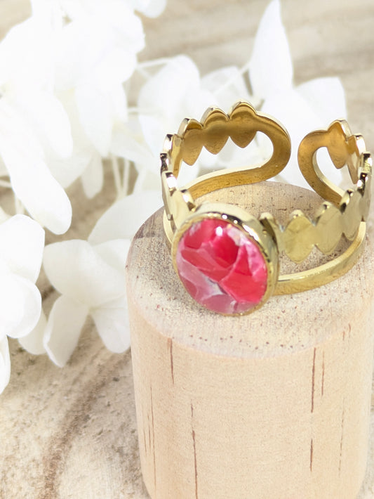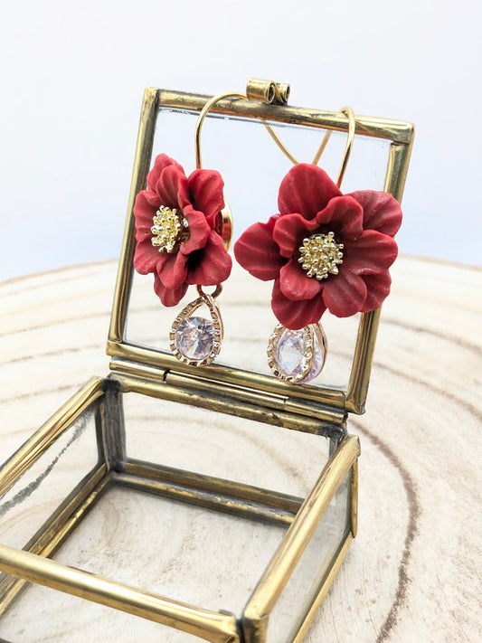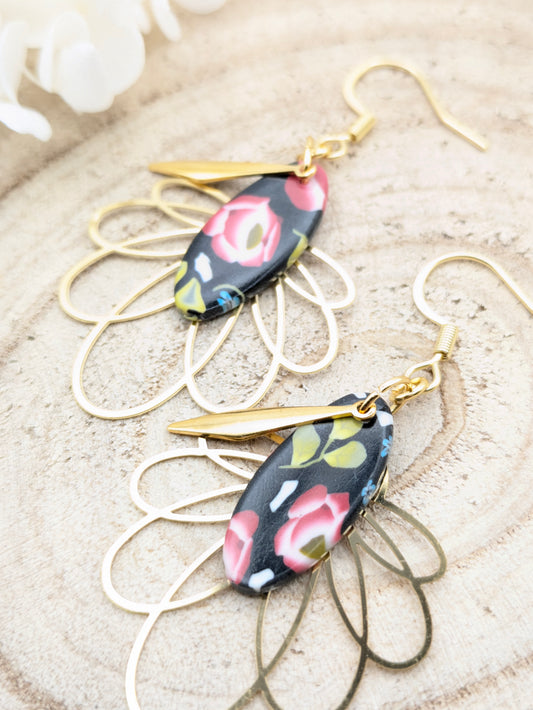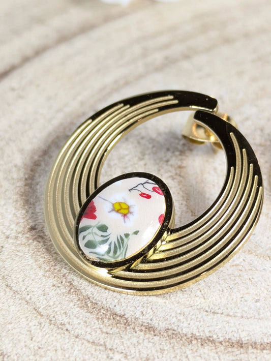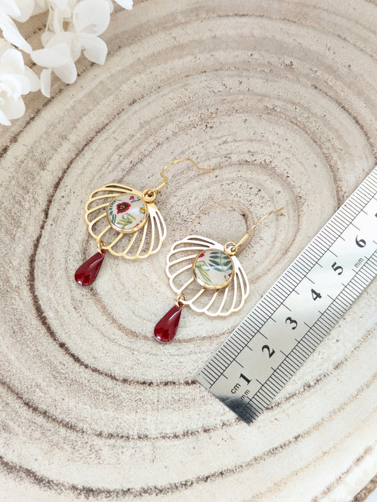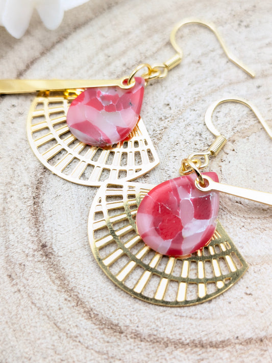 Boucles d'oreilles dorées imitation "Marbre rouge"