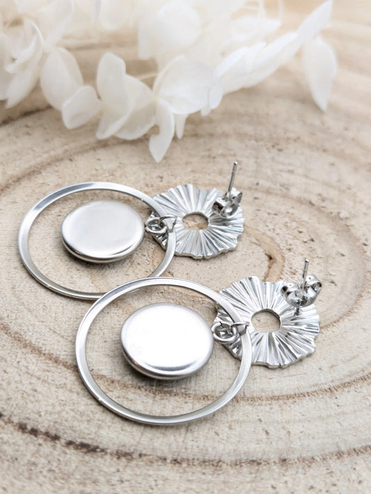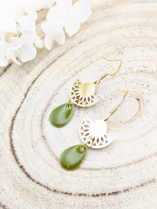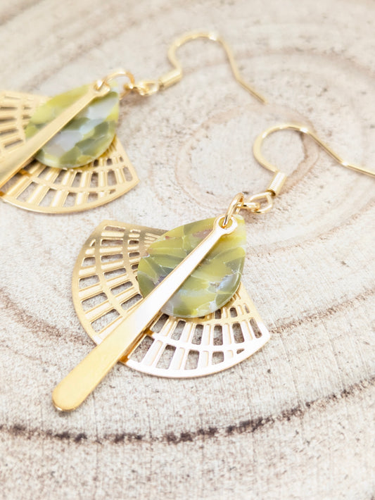 Boucles d'oreilles dorées imitation "Marbre vert"