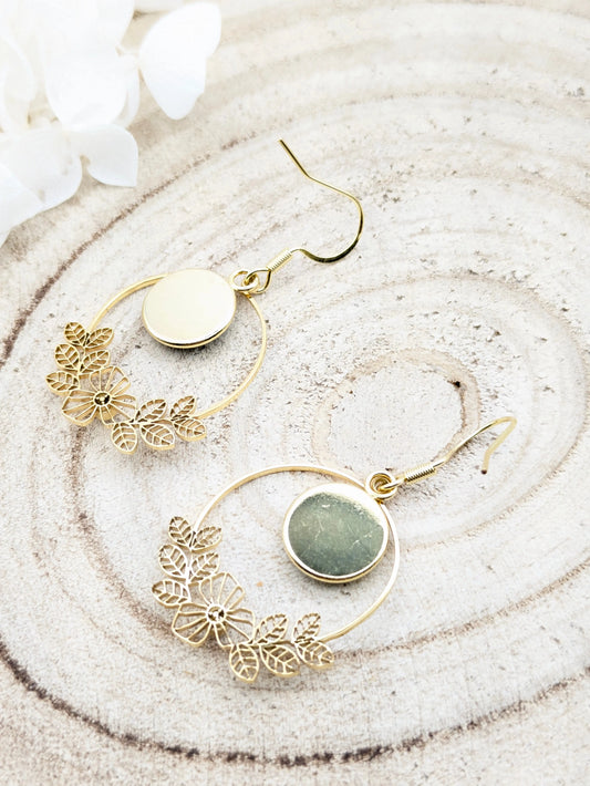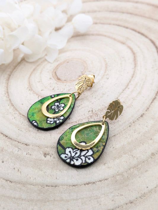 Boucles d'oreilles vertes et fleuries