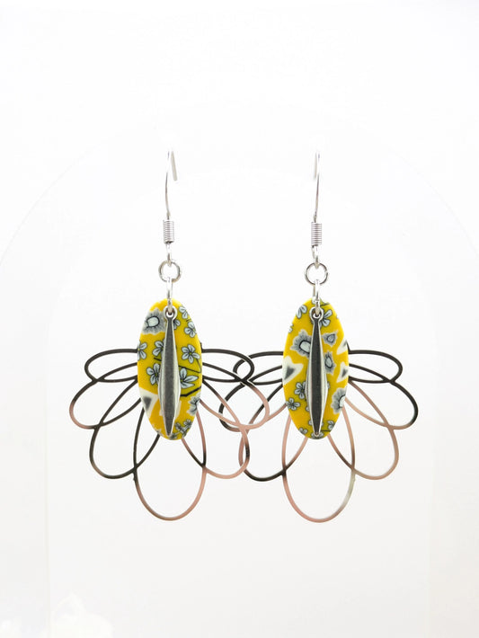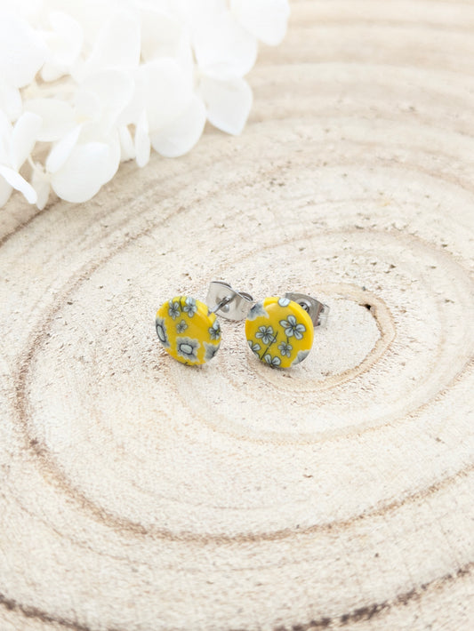 Boucles d'oreilles puces fleuries jaune