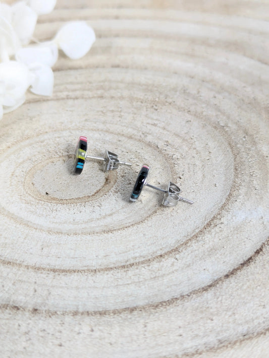 Boucles d'oreilles puces multicolores rayées