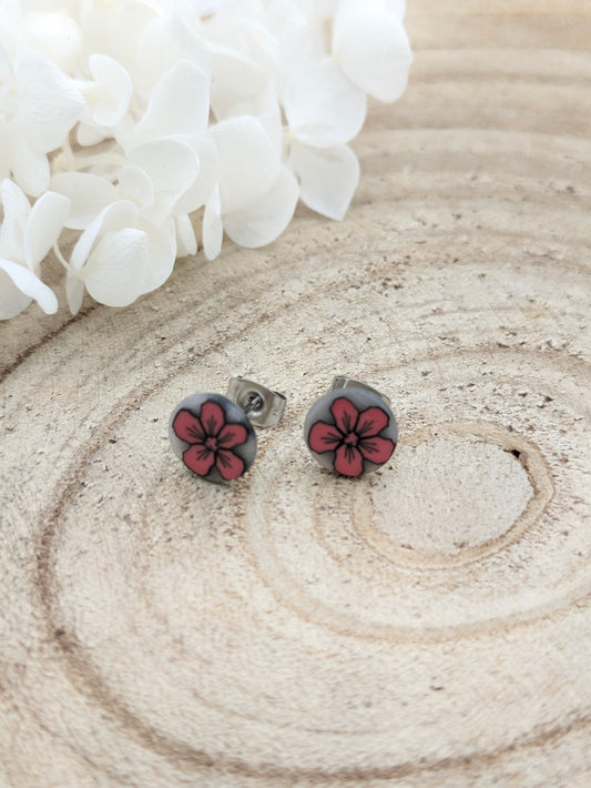 Boucles d'oreilles puces fleur rose