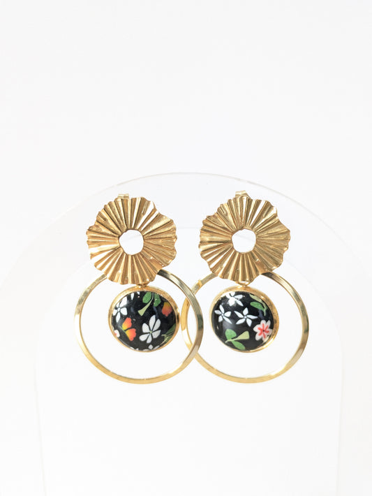 Boucles d'oreilles fleuries sur fond noir