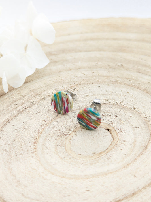 Boucles d'oreilles puces multicolore