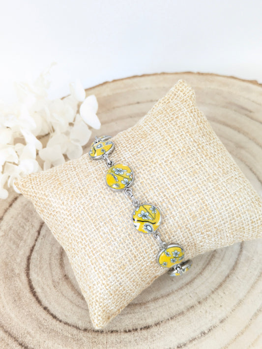 Bracelet fleuri jaune "Pâquerette"