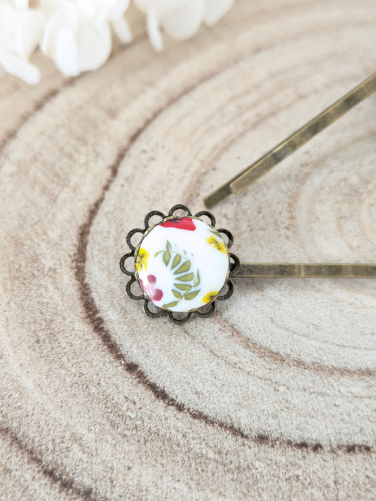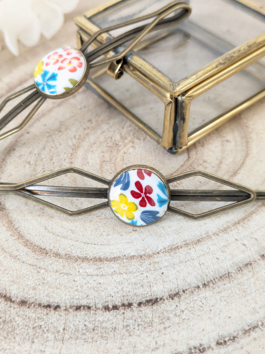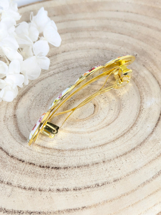 Barrettes fleuries sur fond blanc