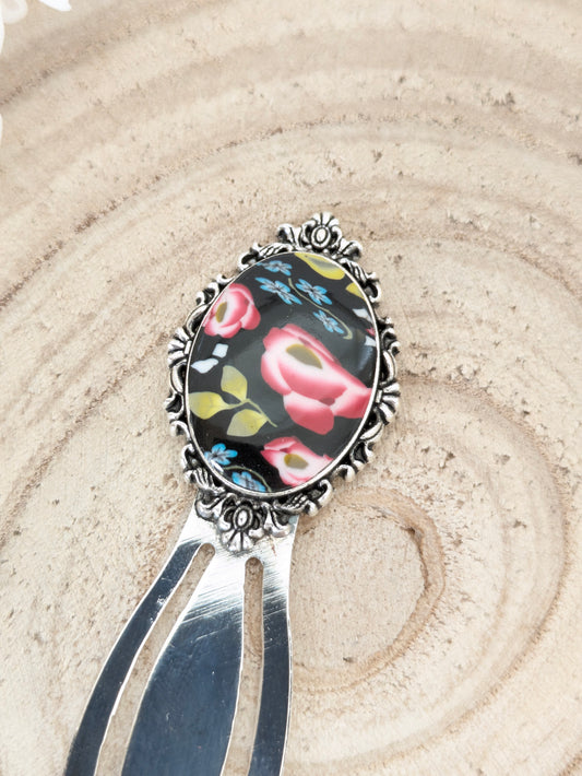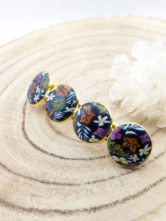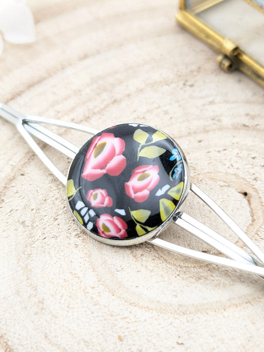 Barrette fleurie sur fond noir