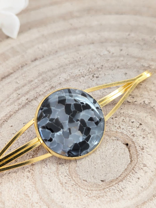 Barrette imitation "Marbre noir" en pâte polymère