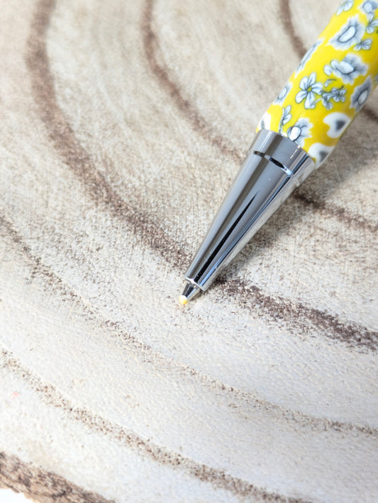Stylo bille fleuri jaune