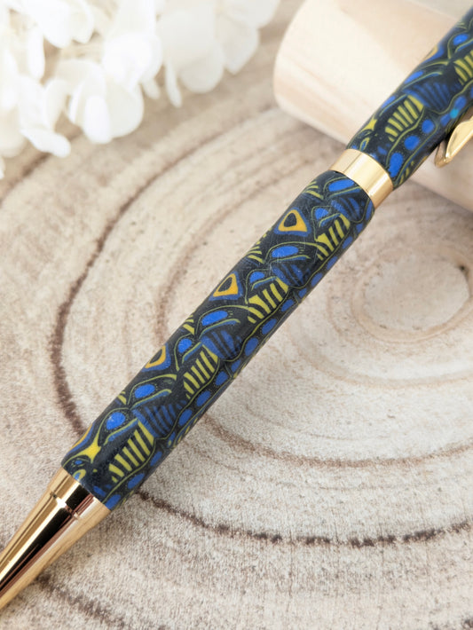 Stylo bille bleu foncé et jaune